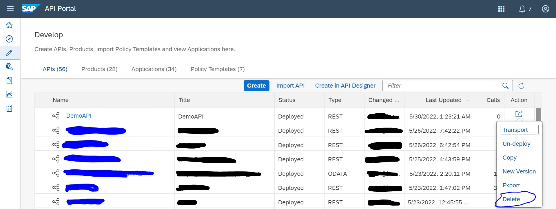 How to delete an API in SAP APIM
